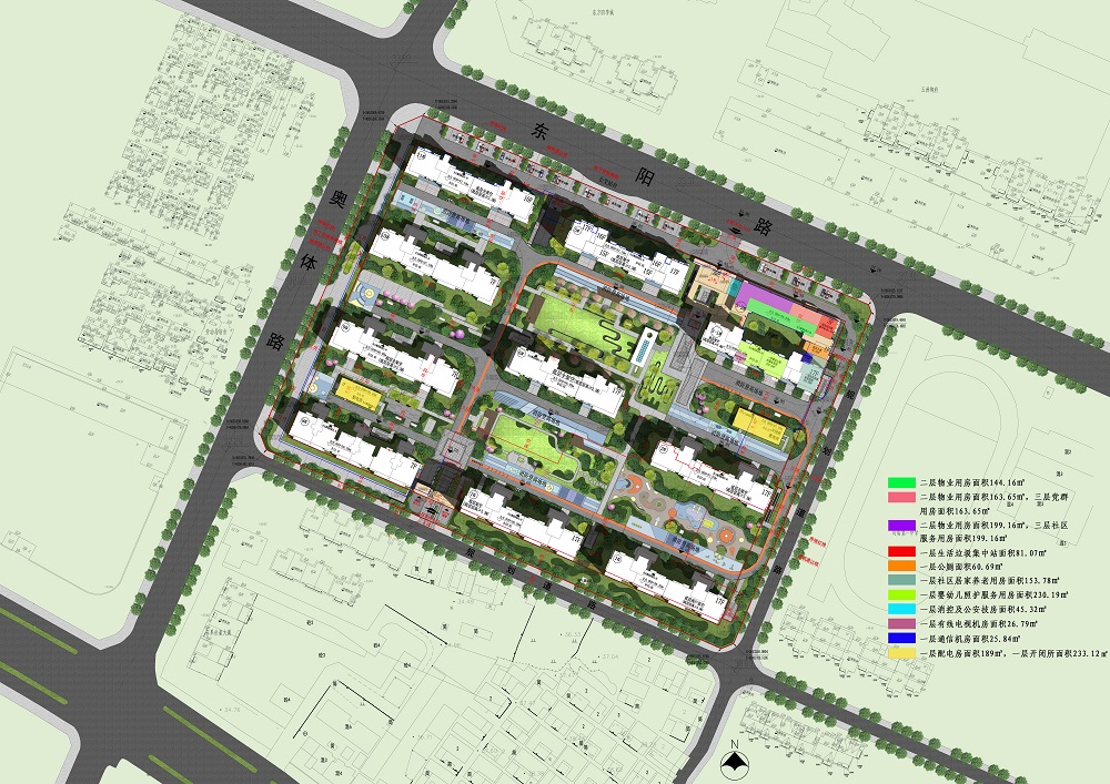 金泰壹号院项目位于奥体路与东阳路交叉口西南角地块,项目总用地面积45010㎡,总建筑面积127336.46㎡,计容建筑面积89898.54㎡,占地面积10788.93㎡,容积率2.0,建筑密度23.97%,绿地率35%,户数497户,配建机动车停车位720辆,非机动车位1798辆。